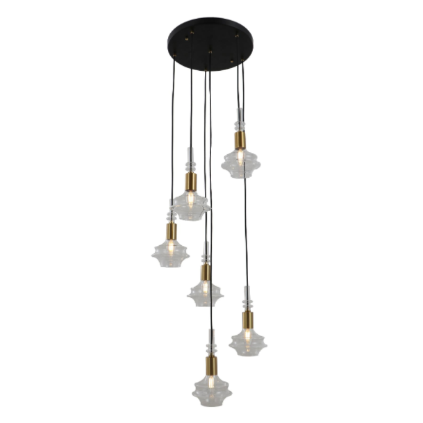 Преобразование столовых в искусственные витрины с современным литом 6-х головным стеклянным подвеской China Sciess Slouge Lighting, слияние точной инженерии и современной элегантности. Предназначенная для ресторанов, отелей и современных домов, этот приспособление имеет прозрачные двойные двойные оттенки стекла диска, изготовленные из проприетарных заводских форм, в сочетании с матовой черной круглой потолочной пластиной и гальвами-отделкой для медного покрытия. Пошаговая высота подвески создает динамическую визуальную глубину, что делает ее фокусной точкой для любого интерьера. Сильное освещение современное 6-х головное световое стекло. CE, VDE, UL, указанный для компонентов электроэнергии.